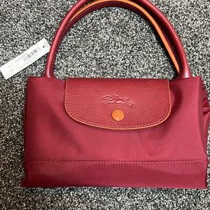 Brand new, never used. Retail tag and liner paper still attached. Great sized tote for travel/work/kids. Beautiful, deep red color. Top handles, 9.1" drop Dimensions: 12.25"W x 7.5"D x 11.75”H Zip closure with snap flap Interior slip pocket