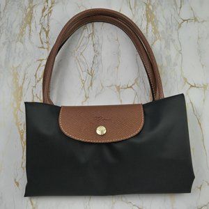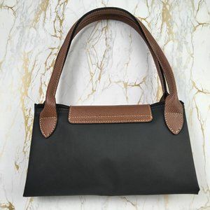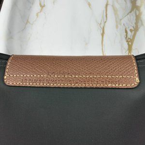 Imported Embossed leather trim complements the sleek nylon of a must-have tote featuring a water-resistant lining and a fold-flat design for compact storage.