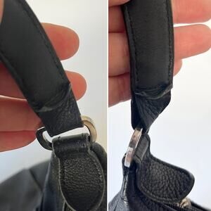 Excellent pre-owned condition with light wear consistent with age, especially along the edges of the leather underneath the strap, which show some curling. Stitches are intact, so it is not going to worsen. No major flaws, stains, or tears.