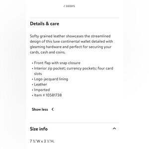 Hi there, I have here basically a brand new Longchamp wallet that I purchased online at Nordstrom in Jan 26. The wallet cost me $360.13 including taxes. It’s a beautiful wallet just too big for what I need and I’ve passed the return window for store credit. Please review photos for size/dimensions. Has plenty of room for card space. Will package carefully.