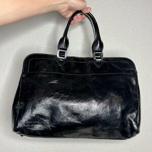 Longchamp black patent leather turn lock large hobo bag luxurious