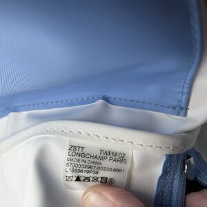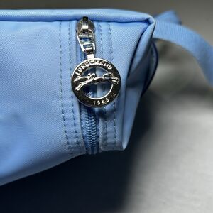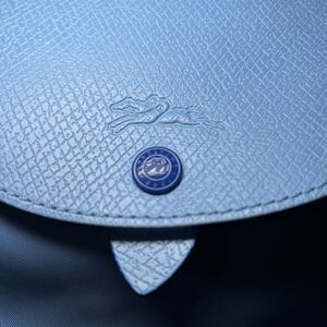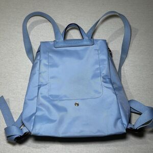 Longchamp le Pliage Club Nylon Backpack In Light Blue Corners Intact Minor Wear, Minor discoloring at corners and the bottom as shown in pictures
