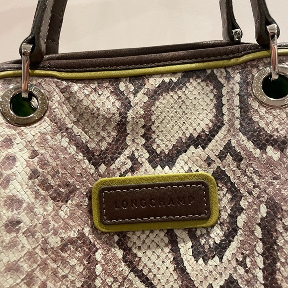 Longchamp tote with cool snakeskin pattern / green interior