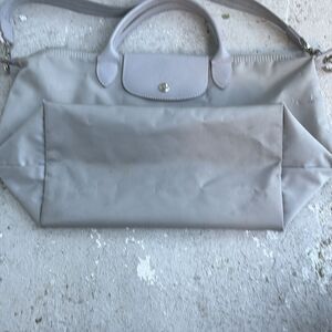 Please look at the pictures. This is a nice tote, but it needs some minor cleanup and has two small wear spots on the corners which I show in pictures comes with the shoulder strap that also needs cleanup. Measuring across the bottom is 12 x 10 x 6.25, measuring across the top is 17.