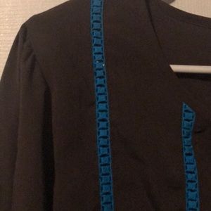 Never worn before, brown, with light blue squares, blouse. It’s in great condition and is tight fitting.