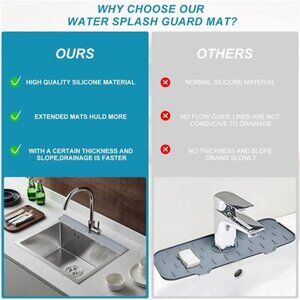 🧿【Auto Draining Design】: Different from the traditional polyester,textile materials faucet pad, Our Faucet Splash Catcher has the automatic drainage function, when you wash your hands or dishes when the water droplets can be quickly caught and then quickly drain water into the sink, without worrying about the water will remain in the silicone faucet pad or countertop.