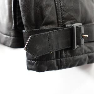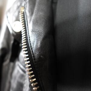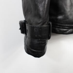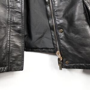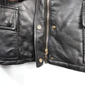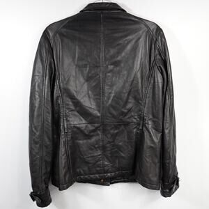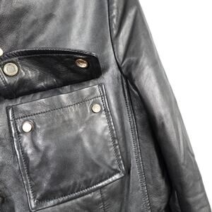 Longhi Black Leather Collared Cargo Utility Moto Biker Jacket Men's 46 Small
