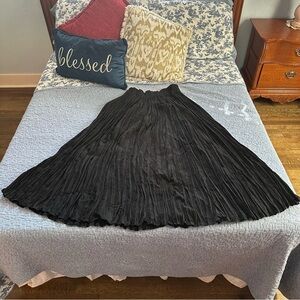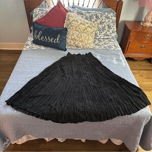 This elegant black pleated skirt is perfect for any occasion. Its classic design offers a timeless look that pairs well with any top. A must-have addition to your wardrobe.