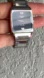 Elegant Swiss-made Longines quartz watch with a rectangular stainless steel case and original longines stainless steel integrated bracelet and clasp.