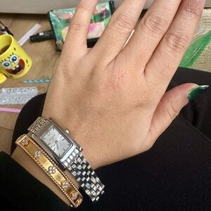 Elegant silver watch with a rectangular face. Perfect for any occasion.