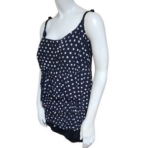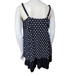 Longitude Many Moons black and white polka dot ruffle one piece swimsuit.