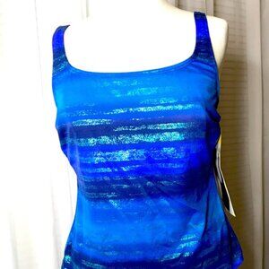 Longitude NEW 2-piece Swim Suit Tankini Blue Shimmer 14