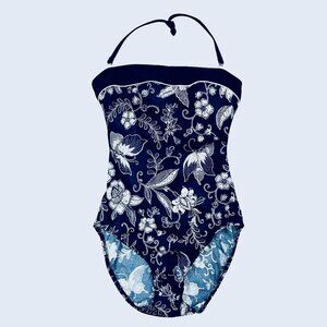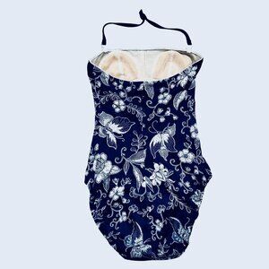 Longitude Navy Blue White Floral Print One-Piece Halter Swimsuit Size 10T