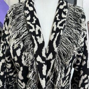 Longline Fringe Belted Cardigan Sweater Coat with Pockets Free Size