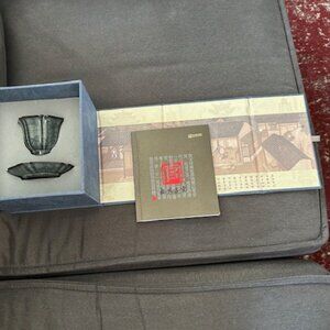 Enhance your home with this elegant slate blue ceramic tea cup and saucer by Longquan Kiln. Perfect for adding a touch of sophistication to any space. In original packaging.