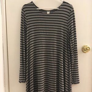 Comfortable, lightweight, and flowy, this dress will make a perfect transition into fall weather. Wear it with flats or boots, tights or leggings. It's a swing dress so it falls nicely away from the body and is very flattering.