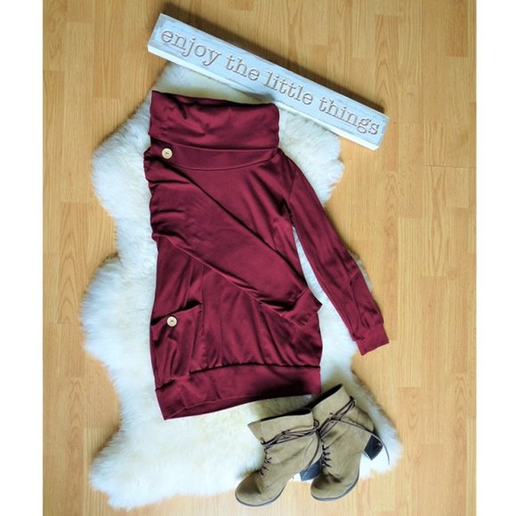 Longsleeve Cowl Neck Sweater Tunic, Burgundy