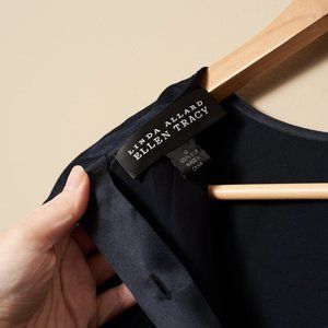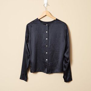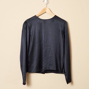 Longsleeve Navy 100% Silk Blouse Button Back 10