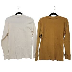 Longsleeve Thermal Tops Set of 2 VTG SunTee 2X Cotton Mustard Yellow Cream 564