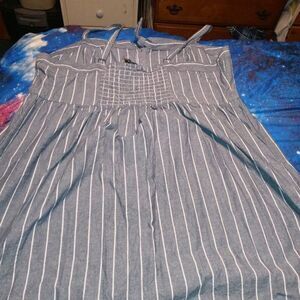 Nice striped denim like shirt. Can be dressed up or down. Adjustable straps. Elastic in back for added stretch. Cute bow detail. BNWOT