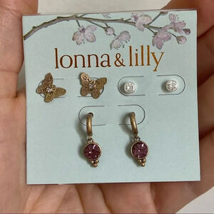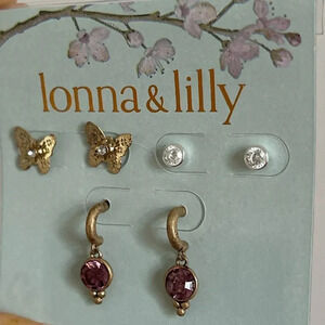 Add a pretty finish to any outfit with the butterfly and flower earrings in this three-piece lonna & lilly set