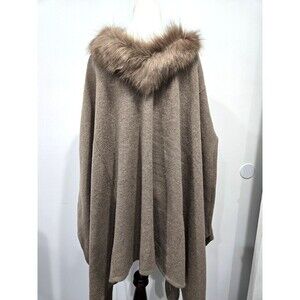 Look By M New York Women's Scarf Poncho Knit Ivory Faux Fur Scarf One Size