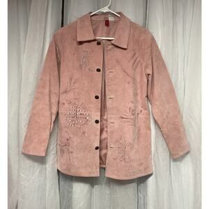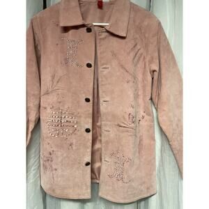 Look East Plus Pink Suede Leather Painted Asian Geisha girl Jacket Size small