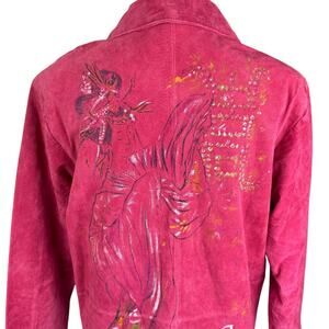 Look East Red Asian Geisha 100% Leather Collared Long Sleeve Button Down Jacket