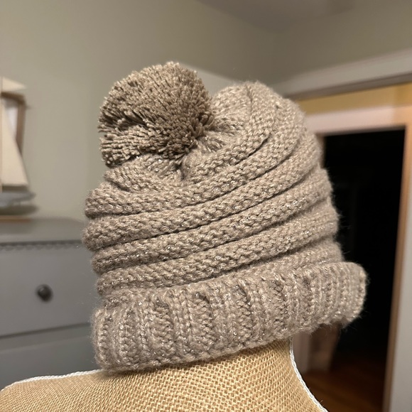Look Knit Hat. Pretty shade of light brown. Cute knit pattern. Never worn. Great condition, seen in photos. One size. Feel free to ask a question or make an offer.