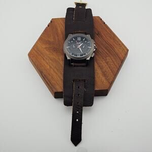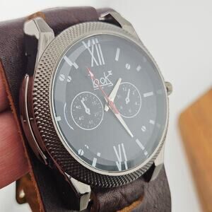 Look Men's Wide Leather Ban Watch Black Brown Bold Multidial Statement GH410