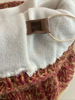 This brand new hat by Look is in excellent condition. It is 9x9 inches and is lined with fleece.