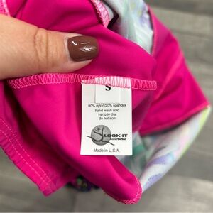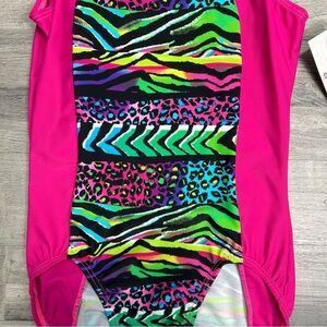 FEATURES: Girl's pink leotard with fun animal print patterns.