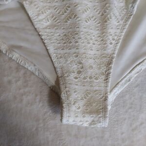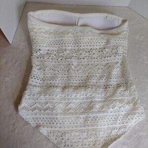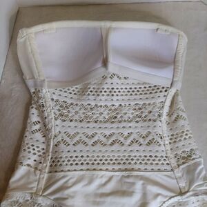 Lookbook Store White Crochet Fully Lined Strapless One Piece Swimsuit