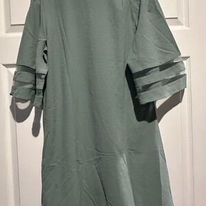 • You can show off your sweet style when you wear this casual dress for women. The loose shift dress comes with crewneck design, 3/4 flare bell sleeves with mesh panel trim details, adding more style and classiness to the piece. No stretch and no closure.