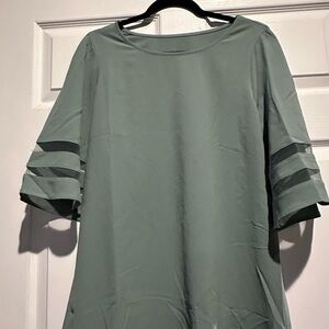 LookbookStore Women Casual Crewneck Mesh Panel 3/4 Bell Sleeve Loose Tunic Dress