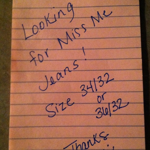Looking for Miss Me 34/32s or 36s bootcut. Please let me know if you have any for sale! Thanks! :)
