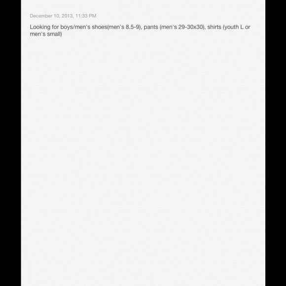 I have nice dress shoes size 9, dress pants size 30, jeans size 29, and a bunch of shirts. If you send me your email I can send pics if you are interested.