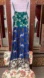 Chic maxi dress with floral patterns. Features green and blue hues. Ideal for stylish outings.