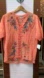 Coral blouse with vibrant floral embroidery. Short sleeves and relaxed fit. Perfect for casual wear.