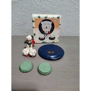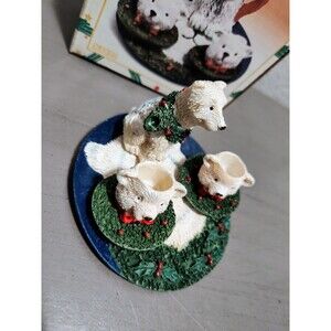 This is a charming vintage miniature teddy bear Christmas tea set made by Loomco International in 1995. The set includes seven pieces and features cute bears in multicolor. It is made of resin and has a painted finish. The set is hand painted and comes in a boxed package. Perfect for any room and occasion, this collectible set is a great addition to your Christmas decorations.