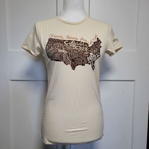 Loomstate for chipotle tee Womens across America tee 100% organic cotton New no tags Cat friendly home AA