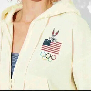 Looney Tune Zip-Up Hoodie Jacket Sized To Waist Women’s Size M USA Olympic