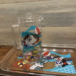 2 Tweety, Bugs, Sylvester and Taz tumblers with tray and pitcher.