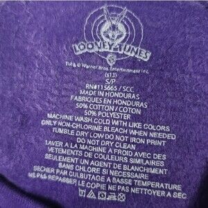 Looney Tunes purple crewneck sweater, Looney Tunes characters Bugs Bunny & Tasmanian Devil in baseball sport styled tops paired with baggy jeans & backwards hats. The colors are beautiful & "pop" on this sweater. Size S.