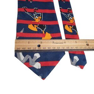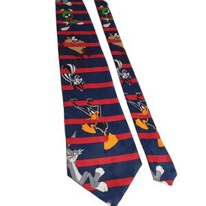 Elevate your professional attire with this Looney Tunes Character Tie. The vibrant red and blue stripes adorned with beloved characters add a touch of fun to your formal wear.