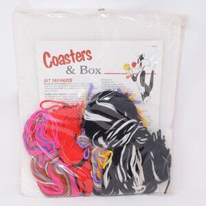 Looney Tunes Leisure Arts 51503 Needlepoint Kit Coasters & Box DIY VTG 1997 NOS