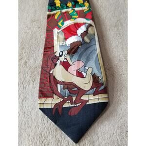 Looney Tunes Mania 1996 Christmas Tasmanian Devil Men's Tie Polyester Vintage