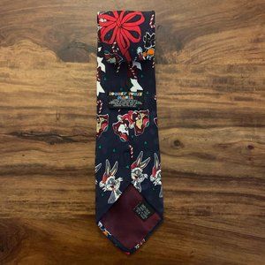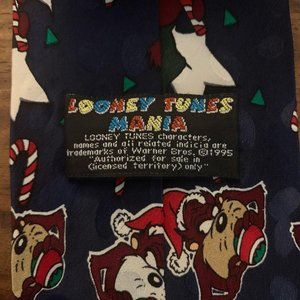 Looney Tunes Mania Navy 100% Silk Holiday Christmas Tie featuring Bugs Bunny, Daffy Duck and the Tasmanian Devil. Excellent pre-owned condition.
