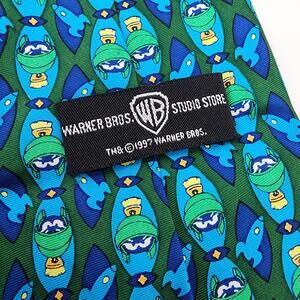 Looney Tunes Marvin The Martian Novelty Neck Tie Blue Green Cartoon Vintage 1990s