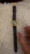 Stylish Armitron watch with a black leather strap. Gold-tone case. Unique dial design.